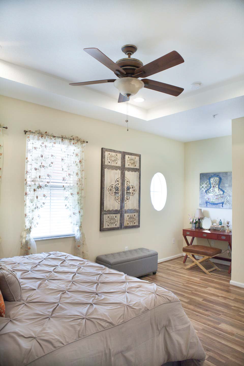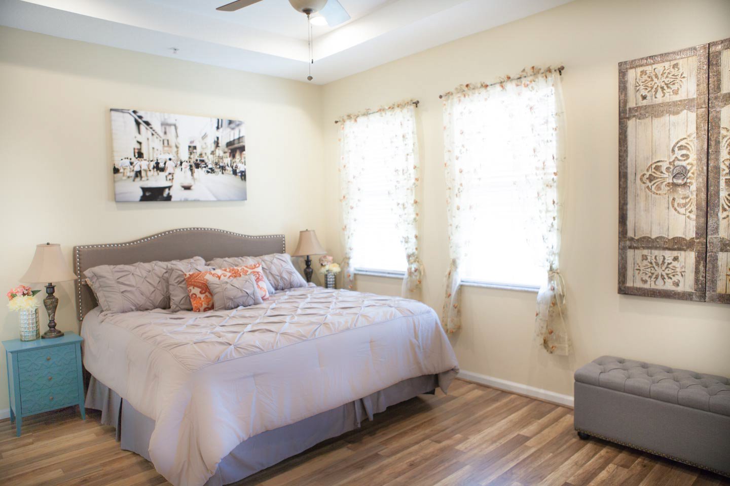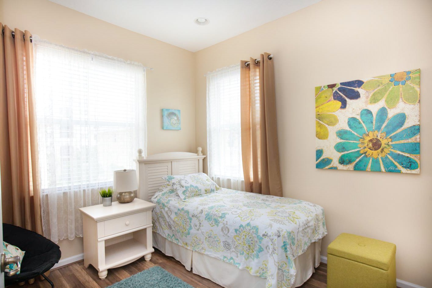 The townhouse has two spacious master bedrooms. The first one has a king bed and en-suite shower. The second one has a queen bed and en-suite shower. Bedroom #2 and #3 have two twin beds and two extra foldable beds. These bedrooms share a full bathroom (bathtub).